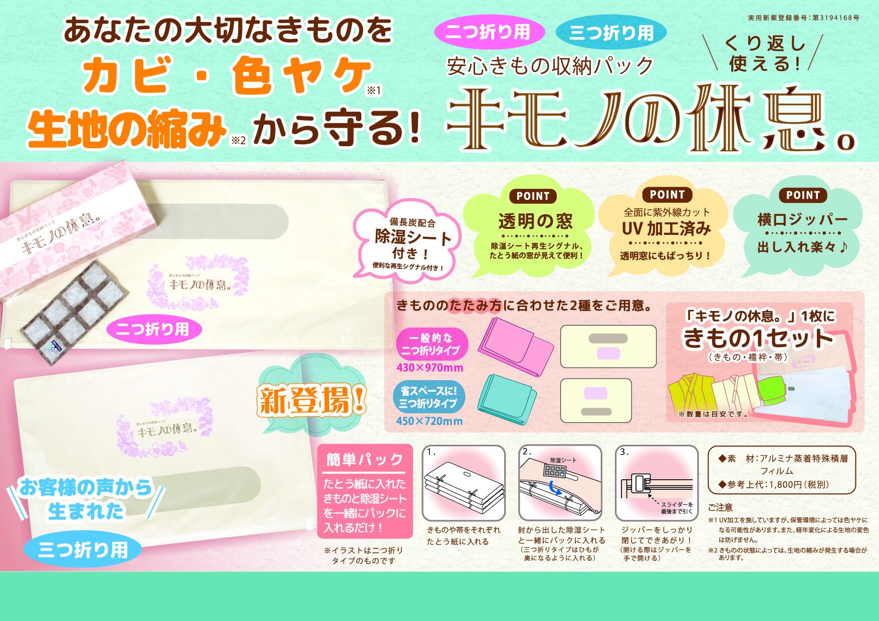 着物3枚、又は着物+長襦袢+帯、収納可能。